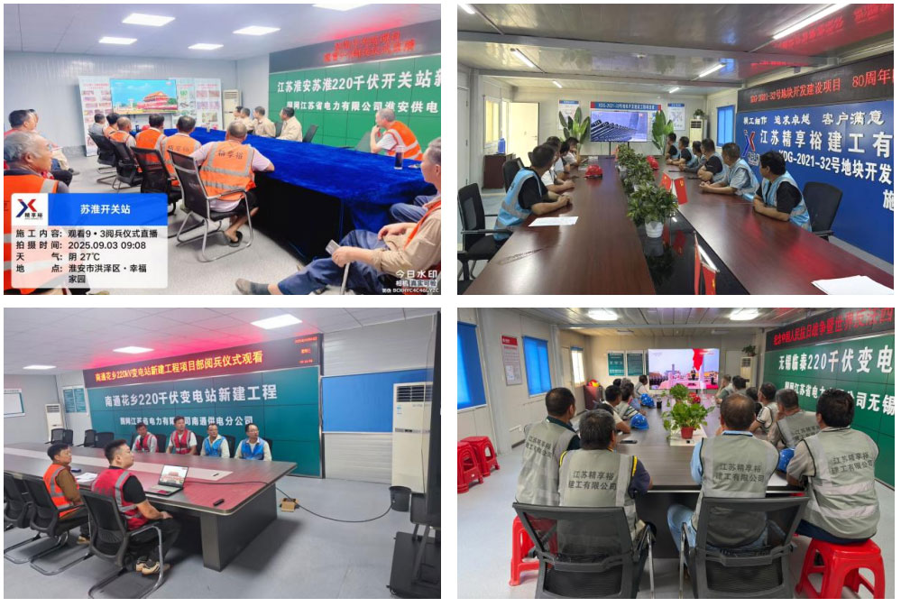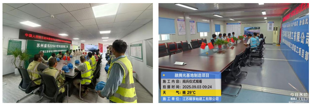 今年是中国人民抗日战争暨世界反法西斯战争胜利 80 周年,9 月3日上午,北京天安门广场隆重举行纪念大会和阅兵仪式。精享裕集团积极响应号召,组织集团公司、下属公司及各项目部员工集中在各地会议室观看盛大阅兵仪式直播。此次活动旨在通过重温抗战历史、感受强军成就,进一步激发员工的爱国情怀与奋斗精神,为企业高质量发展注入红色动力。
