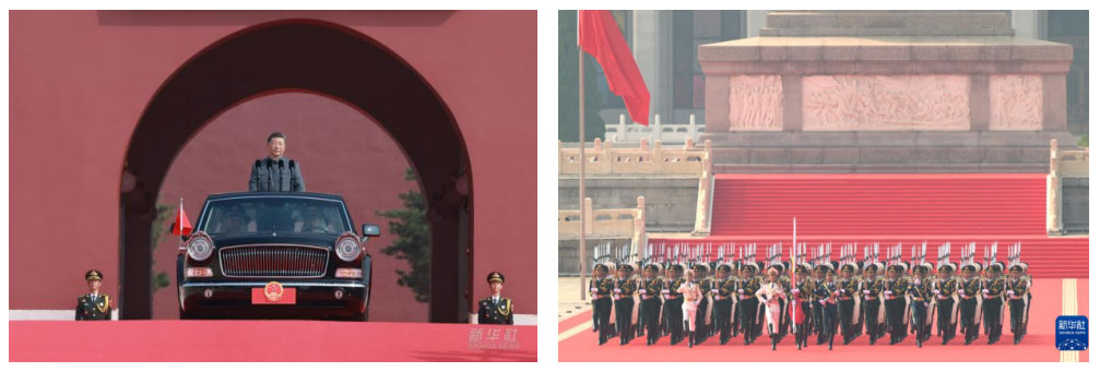 分列式环节,空中护旗梯队、徒步方队、战旗方队、装备方队、空中梯队等方队依次通过天安门广场,展示了我国强大的军事实力和现代化武器装备。