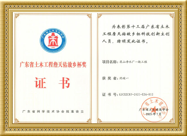 2021年,沈峻一同志荣获“詹天佑故乡杯奖”荣誉称号