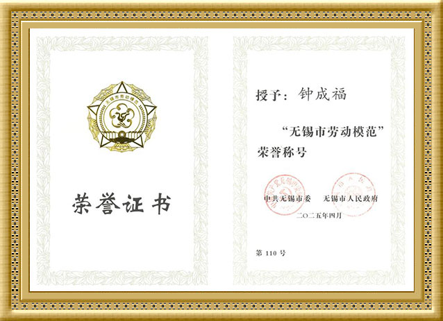 2024年,钟成福荣获年度“无锡市劳动模范”称号