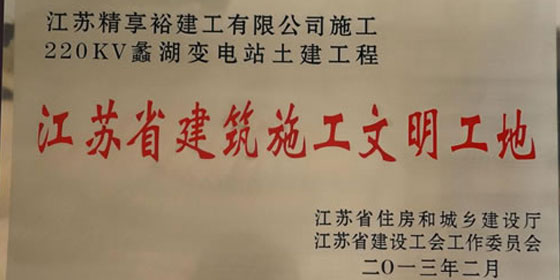 日前,由江苏精享裕建工有限公司承建的220KV蠡湖变电站、220KV七雄变电站被评为“江苏省建筑施工文明工地”…