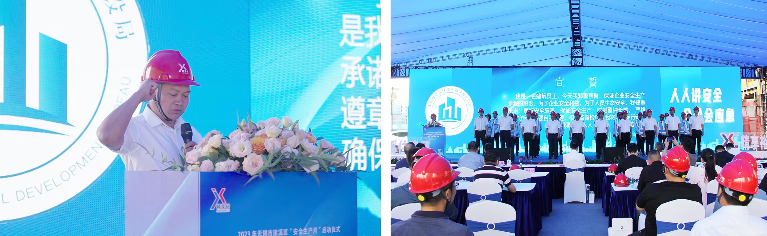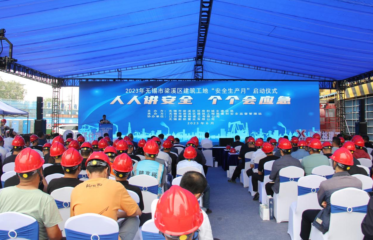 2023年6月是全国第22个“安全生产月”,也是无锡市第28个“安全生产月”。6月6日下午,2023年无锡市梁溪区建筑工地安全生产月启动会在江苏精享裕建工有限公司XDG-2021-33号地块项目部举行。本次活动由无锡市梁溪区住房和城乡建设局主办,无锡市梁溪区建筑工程质量与安全监督管理站承办,江苏精享裕建工有限公司、无锡新朗置业有限公司联合协办。