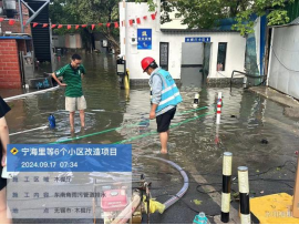 建工公司作为无锡市梁溪区老旧小区改造工程项目的党建联盟单位,在台风过后,得知谈渡桥社区木樨厅小区积水严重,宁海里项目部的成员们毫不犹豫,主动携带排水设备赶赴现场。他们穿上水靴,踏入积水中,耐心检查排水管道堵塞的原因,同时迅速架设抽水泵等设备,开始紧急排水作业,大家相互配合,不畏泥泞,手持工具不间断地疏通排水口,确保积水尽快排出,有效确保了社区居民的安全。