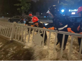 与此同时,扬名B项目部的员工们也主动配合扬名街道在南湖大道等路段开展清障和排涝工作,将在水中熄火且无法移动的汽车推至安全地带、修复倒塌护栏等。